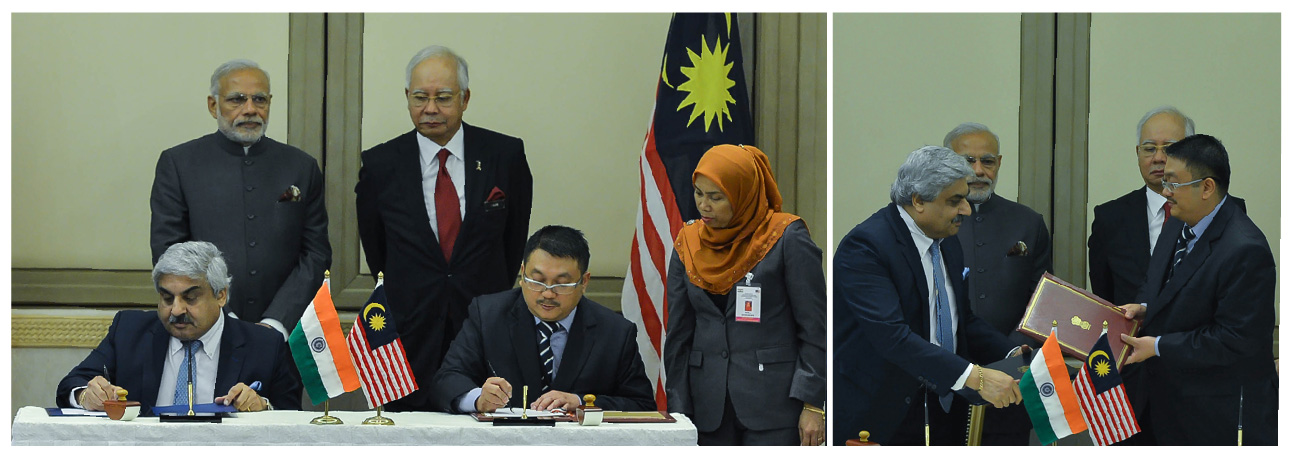 The signing ceremony was witnessed by the Prime Minister of Malaysia Dato' Seri Mohd Najib Tun Razak and also the Prime Minister of India, Narendra Modi.
