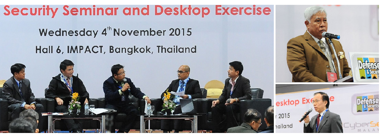 On 4 November 2015, CyberSecurity Malaysia participated in Cyber Security Seminar and Desktop Exercise organized by the Ministry of Defence of Thailand in IMPACT Muang Thong Thani, Bangkok, Thailand.