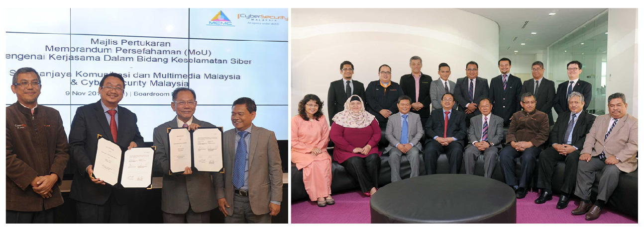 On 9 November 2015 there was a Memorandum of Understanding exchange between CyberSecurity Malaysia and the Malaysian Communications and Multimedia Commission (MCMC) at the MCMC's headquarters in Cyberjaya.