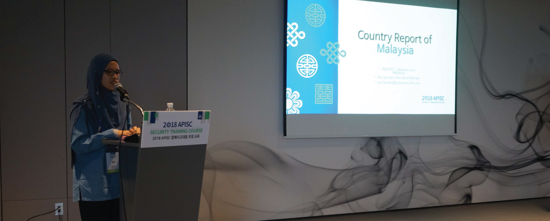 CyberSecurity Malaysia attended the 2018 APISC Security course in Seoul, South Korea from 23 to 27 April 2018. The course was organized by KrCERT / CC, Korea Internet Security Agency (KISA) to highlight matters relating to organizational management, law, cyber incident, and etc. in the CSIRT operation.