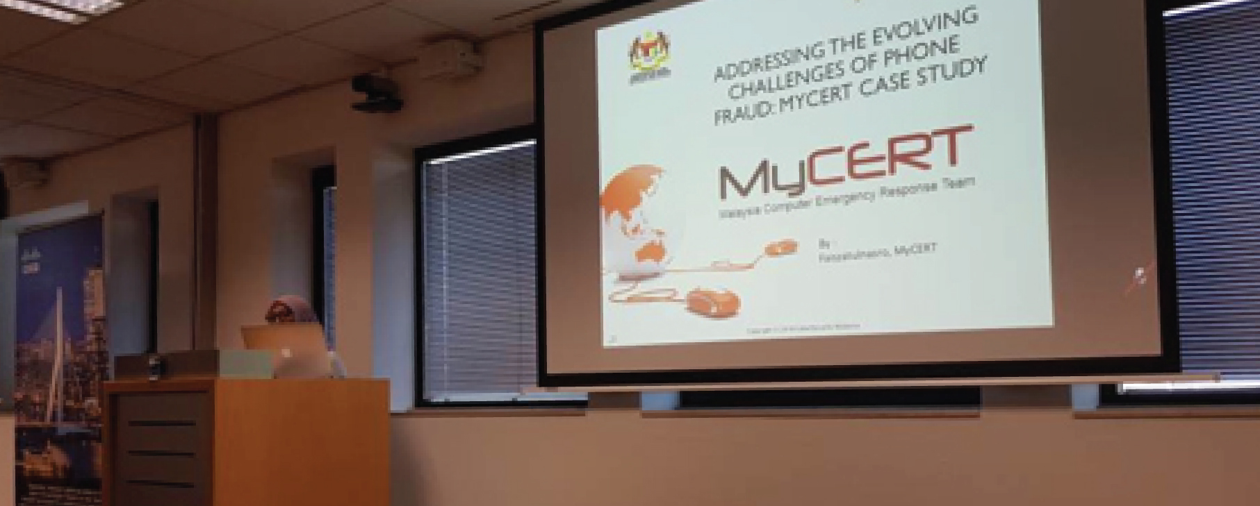 CyberSecurity Malaysia was represented by Faiszatulnasro Binti Mohd Maksom from Malaysia Computer Emergency Response Team (MyCERT). She delivered a presentation entitled "Addressing The Evolving Challenges Of Phone Fraud: MYCERT Case Study".