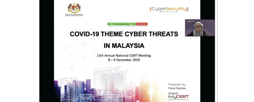 On 9 December 2020, CyberSecurity Malaysia participated in the 15th Annual Technical Conference for the Global Computer Security Incident Response Team (CSIRT) organised by the National CSIRT (NatCSIRT), virtually.