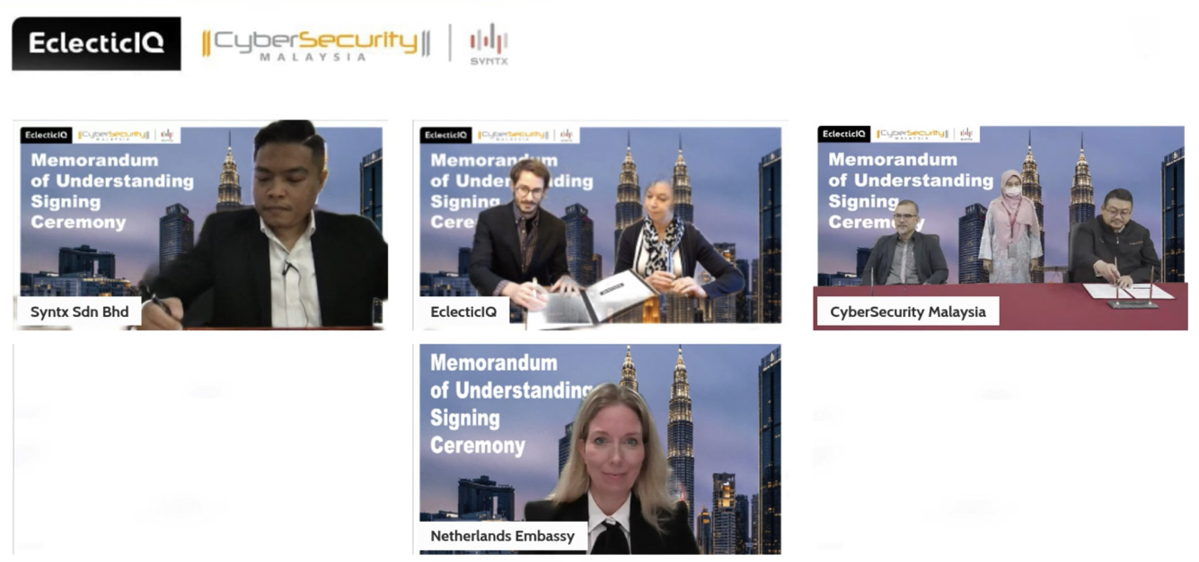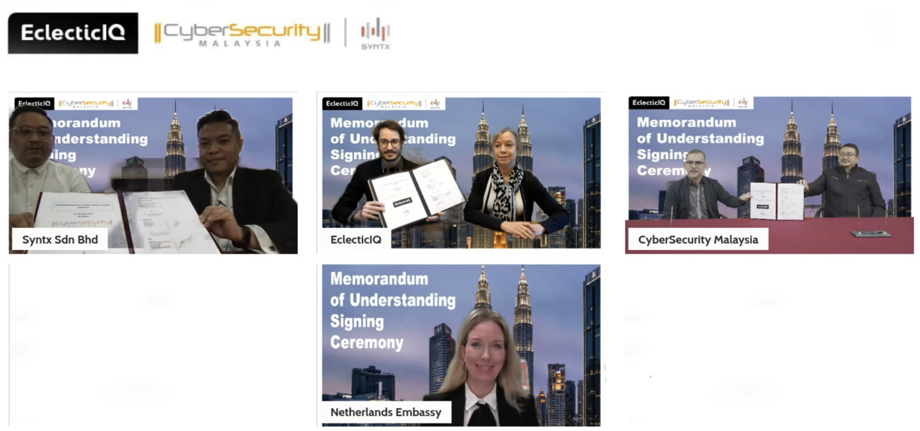 On 25 January 2022, CyberSecurity Malaysia, EclectiqIQ and Syntx Sdn. Bhd. signed a Memorandum of Understanding (MoU) virtually.
