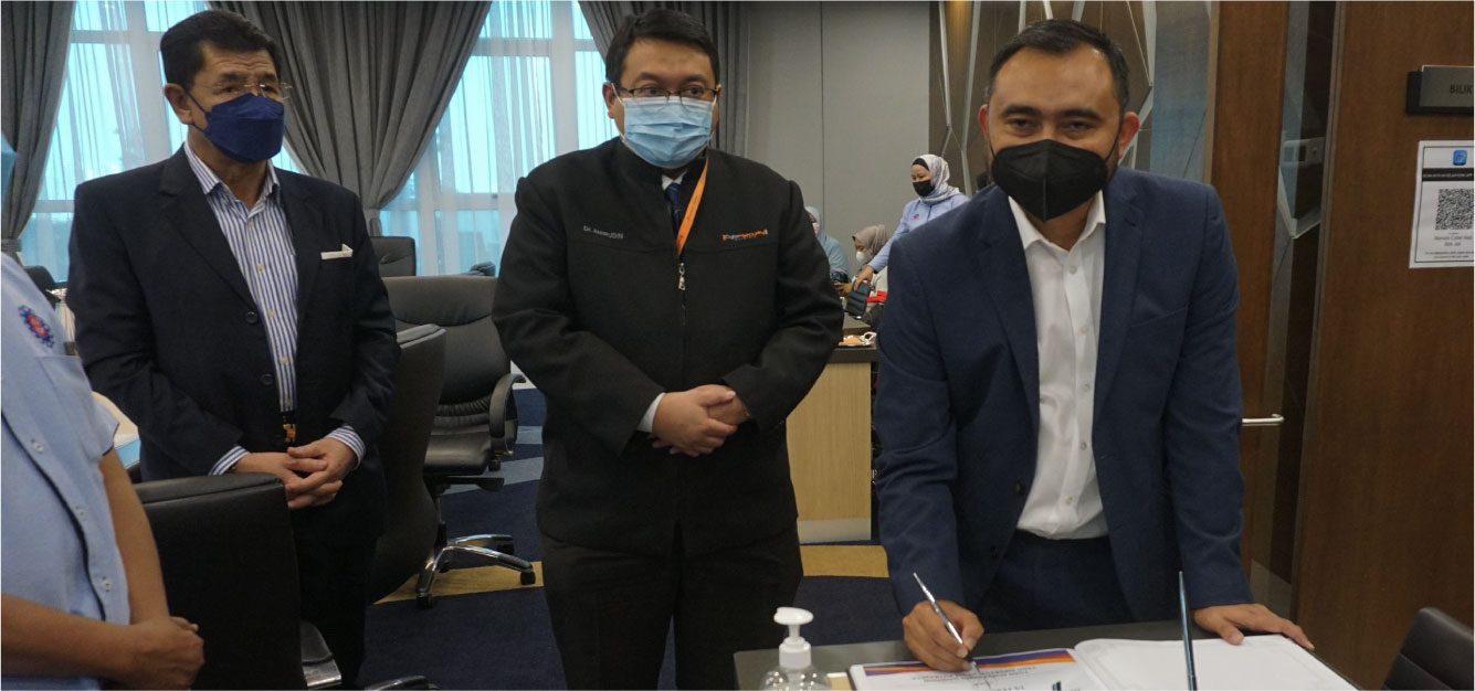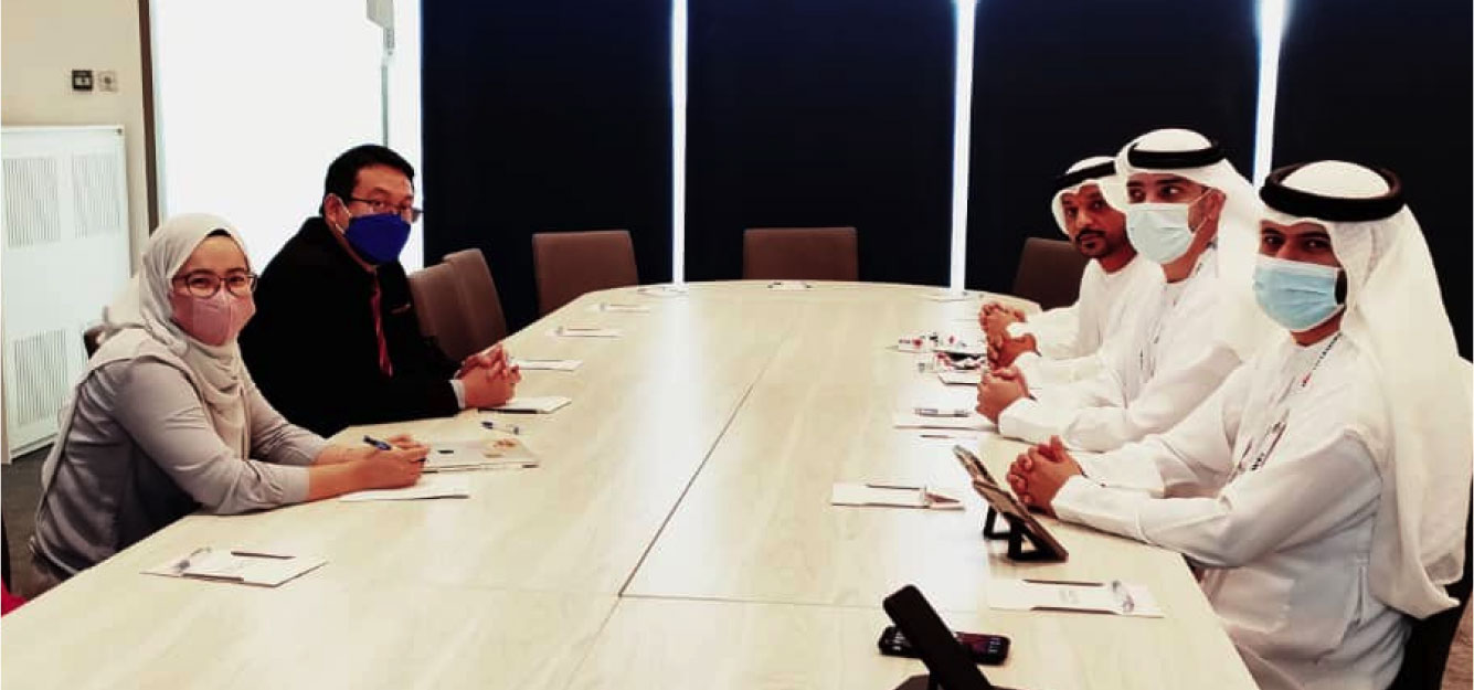 YABhg. General Tan Sri Dato' Seri Panglima Mohd Azumi bin Mohamed (Retired), Chairman Board of Directors and YBhg, Dato' Ts. Dr. Haji Amirudin Abdul Wahab FASc, Chief Executive Officer welcome DPMM delegation led by Tuan Norsyahrin Hamidon, President of Malaysian Malay Chamber of Commerce Putrajaya.