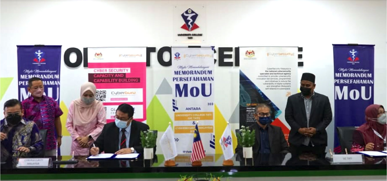 On 17 February 2022, CyberSecurity Malaysia and TATI University College (UC TATI) signed a Memorandum of Understanding (MoU) at TATI University College Campus, Chukai, Terengganu.