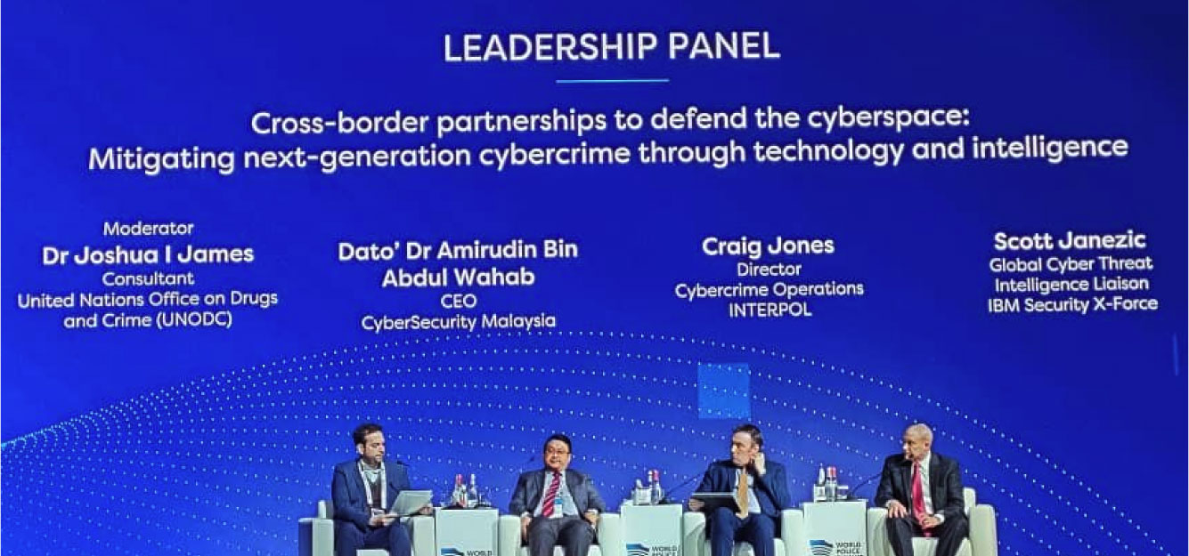 Dato’ Ts. Dr. Haji Amirudin Abdul Wahab FASc, Chief Executive Officer and Sarah Khadijah Taylor, Digital Forensics Manager represented CyberSecurity Malaysia at this conference. Dato’ Ts. Dr. Haji Amirudin became a panelist at the forum entitled “Cross-border partnerships to defend the cyberspace: Mitigating next-generation cybercrime through technology and intelligence”.