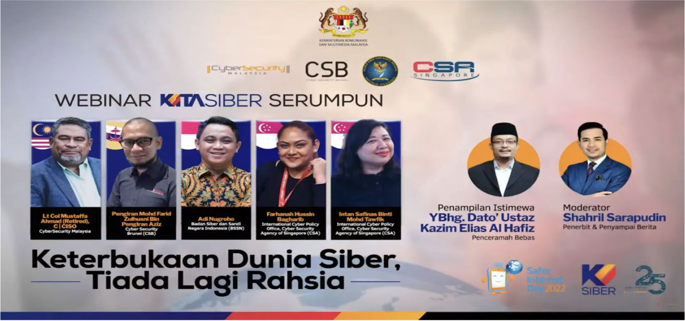 The forum was organised in conjunction with Safer Internet Day (SID) 2022 - Malaysia Edition in cooperation with the Indonesian National Cyber and Password Agency (BSSN), Cyber Security Brunei (CSB) and the Cyber Security Agency of Singapore (CSA).