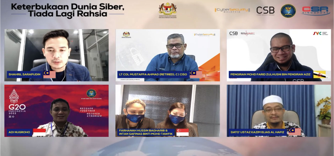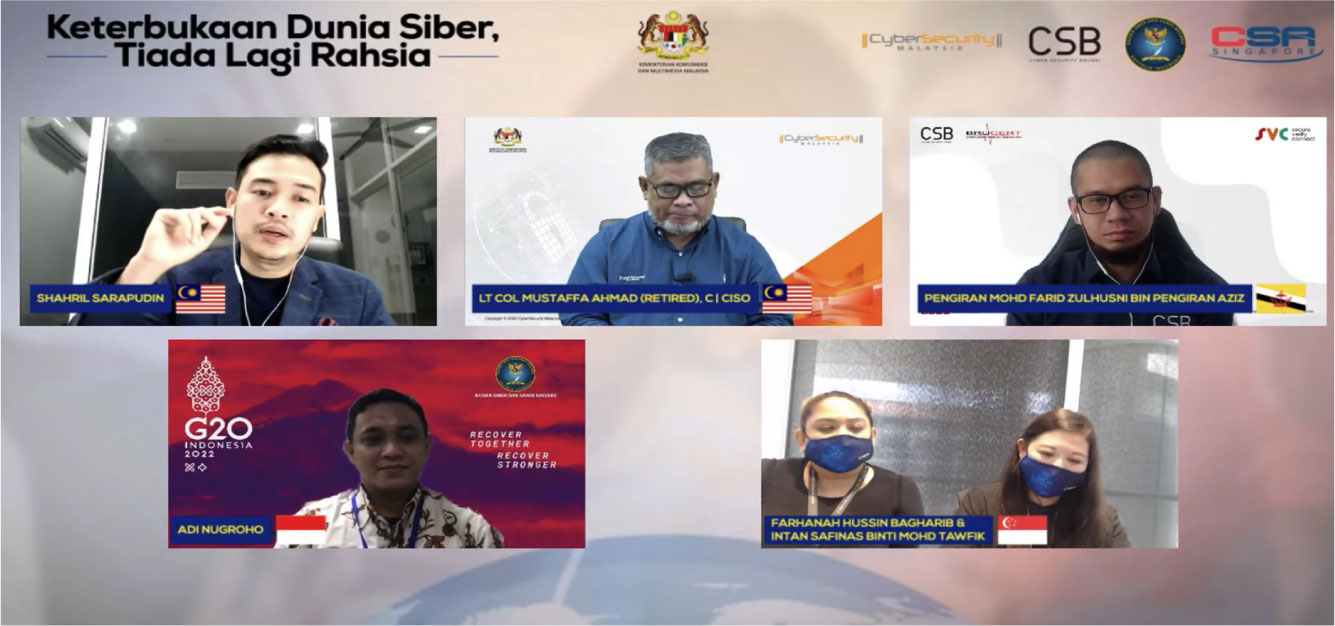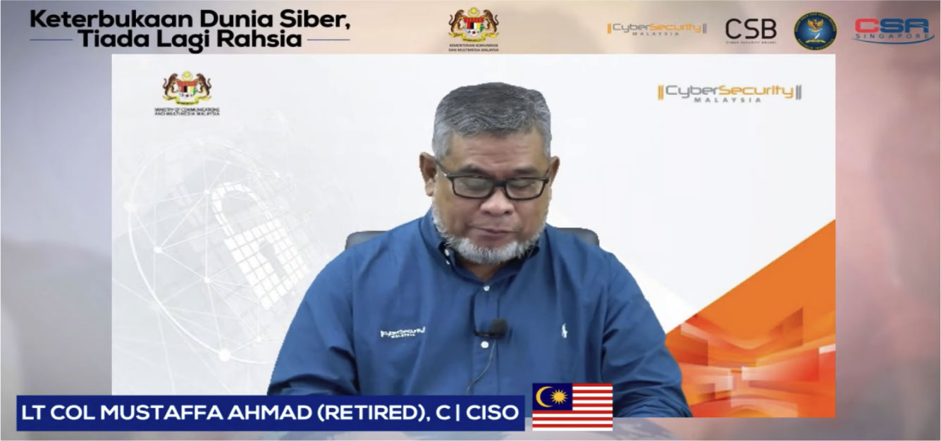 Lt Col Mustaffa bin Ahmad (Retired) C/CISO, Senior Vice President, Outreach & Capacity Building Division became a panelist together with other representatives from the Indonesian National Cyber and Password Agency (BSSN), Cyber Security Brunei (CSB) and Cyber Security Agency of Singapore (CSA).