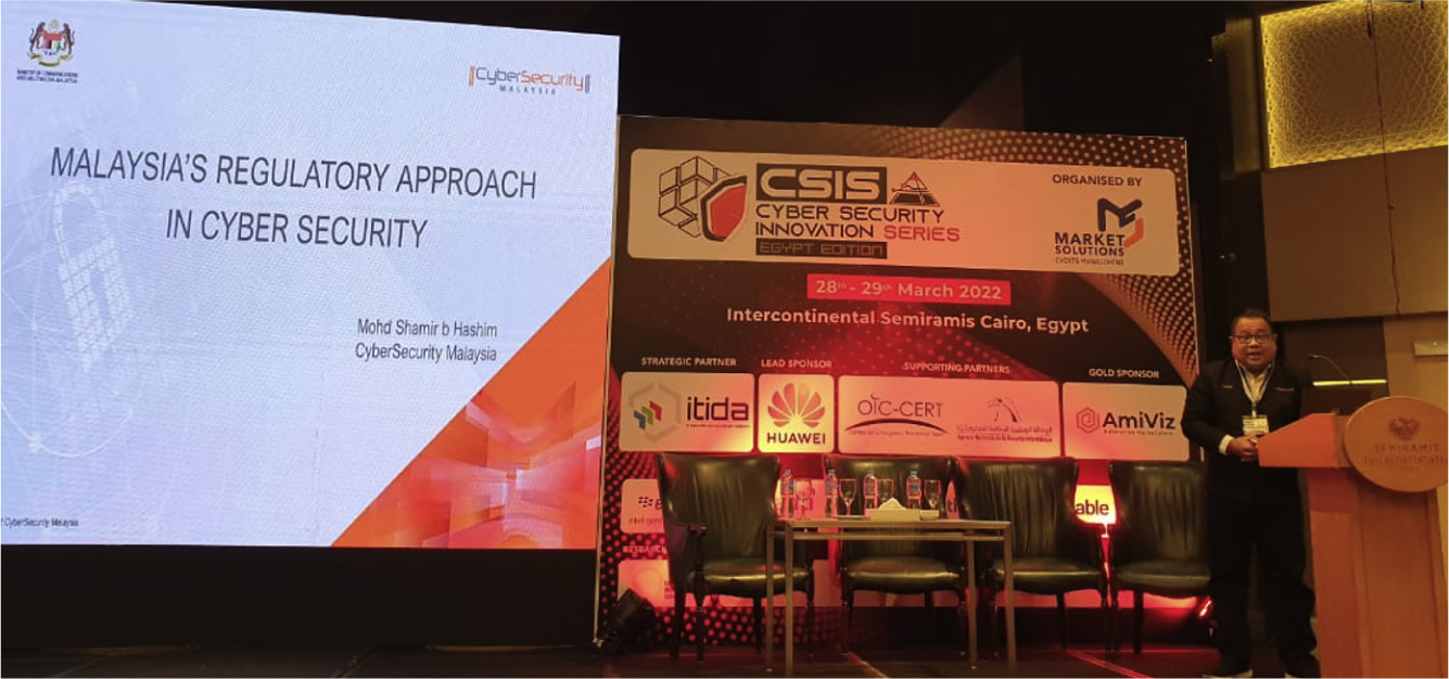 On 28 to 30 March 2022 CyberSecurity Malaysia participated in Egypt Edition Cybersecurity Innovation Series (CSIS) Conference in Cairo, Egypt organised by Market Solutions Events Management.