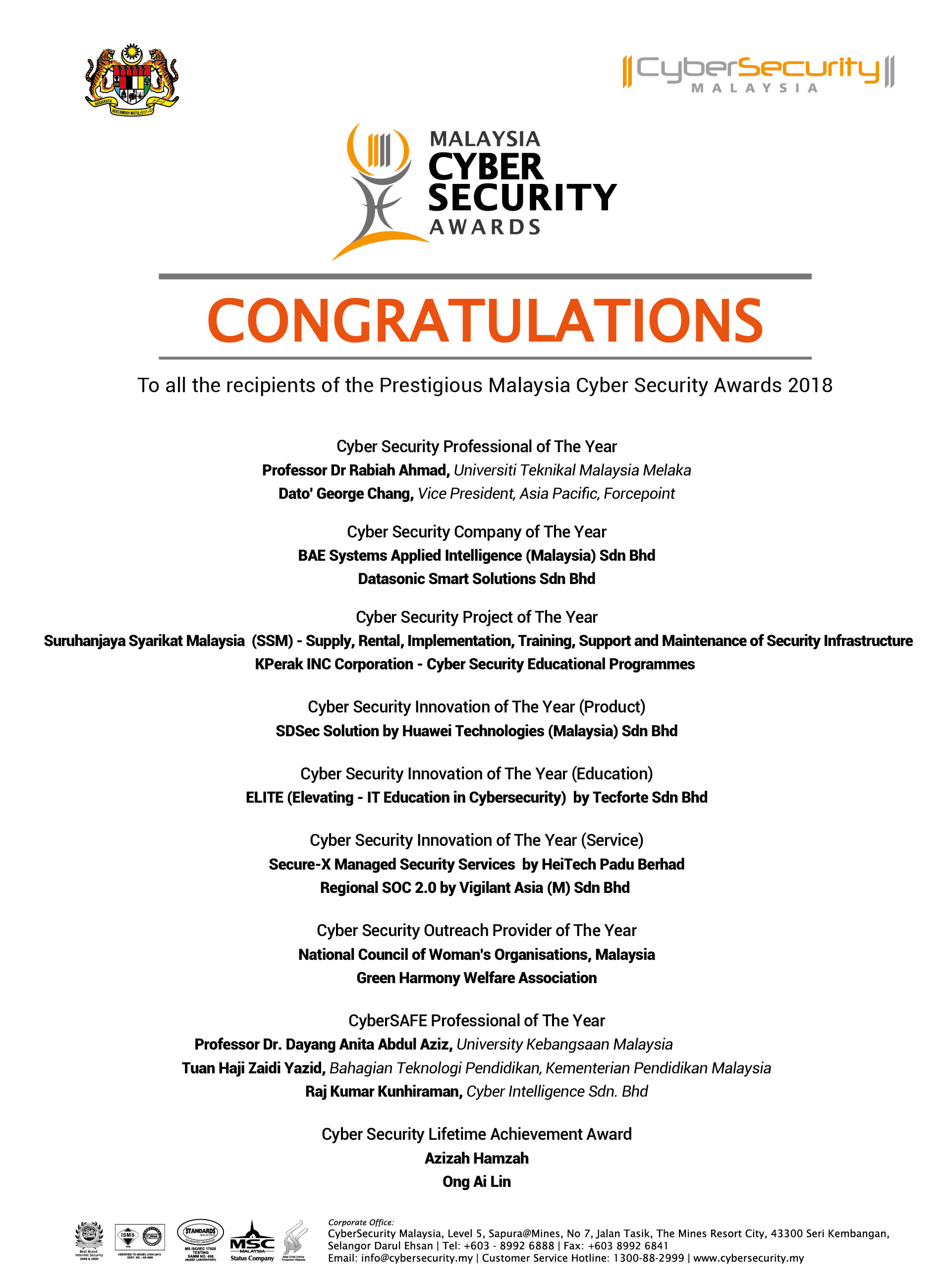 For more information about Malaysia Cyber Security Awards, please contact: