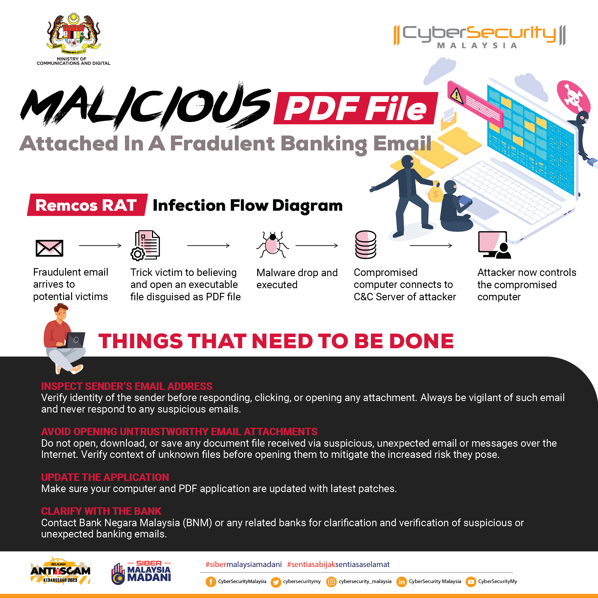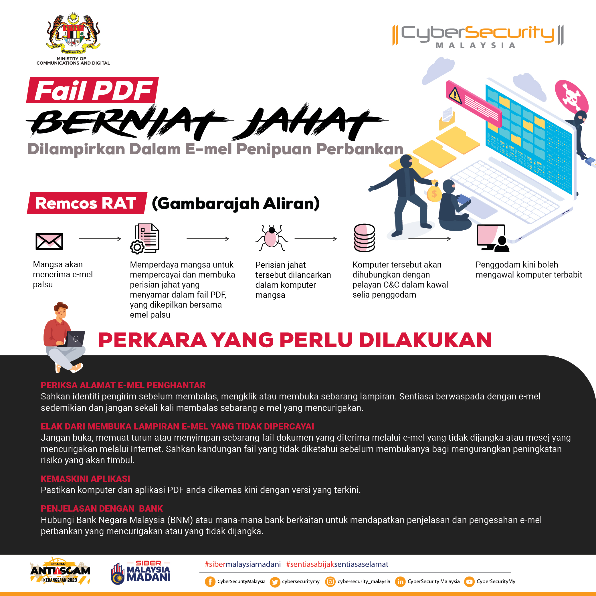 CyberSecurity Malaysia is the national cyber security specialist agency under the purview of the Ministry of Digital (KD)